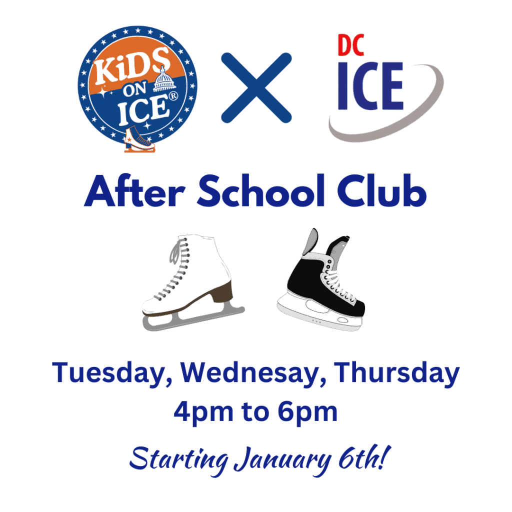 Another season of After School Skating starts in January! Eight weeks of after school fun will be offered on Tuesdays, Wednesdays, and Thursdays from 4pm to 6pm. This season we’re partnering with DC-ICE to bring back on-ice favorites like ice drills, paceline, freeskating, and games! Space is limited, so register now to secure your spot!